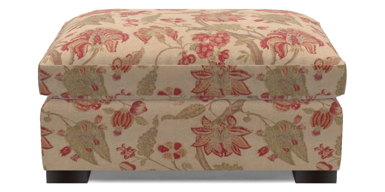 Wadenhoe Bespoke Standard Footstools in Floral Linen : Indienne T Rosso