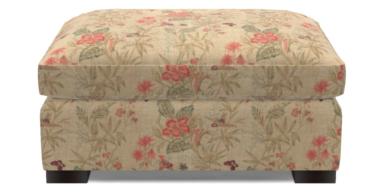 Wadenhoe Bespoke Standard Footstools in Floral Linen : Shangri-la Pebbles