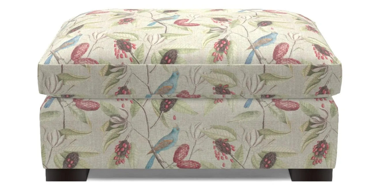 Wadenhoe Bespoke Standard Footstools in RHS Botanicals - Mark Catesby Grosbeak : Natural