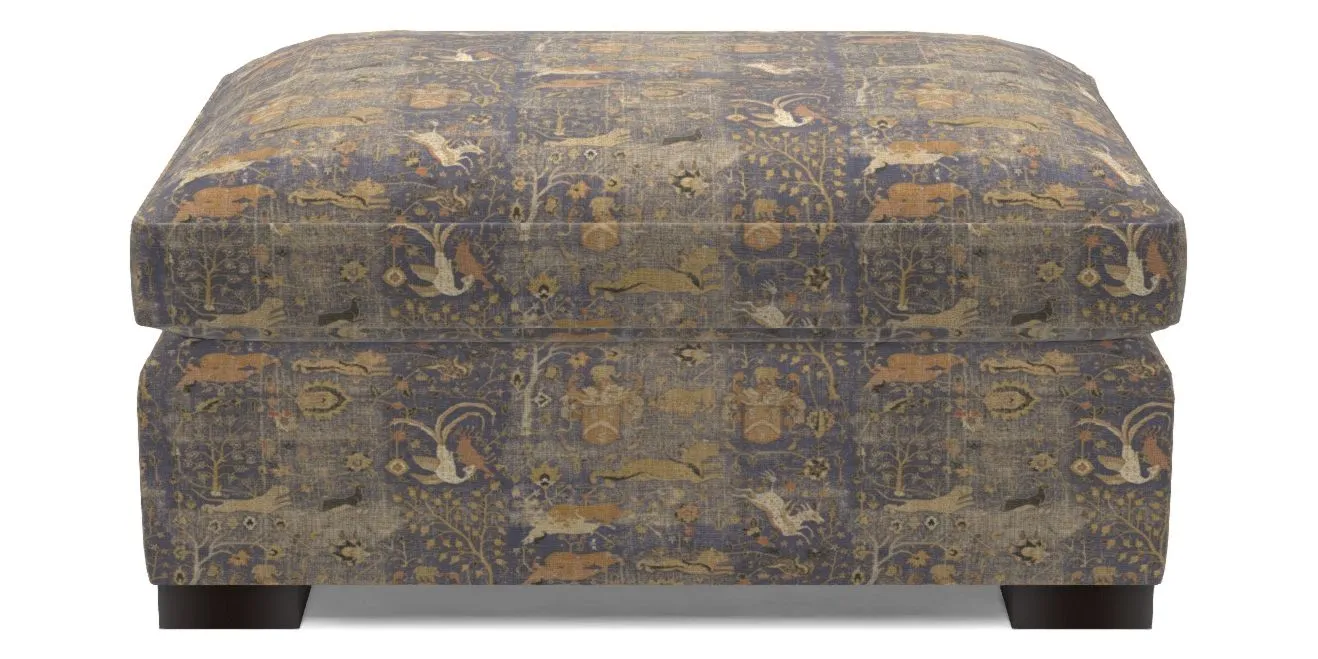 • Wadenhoe Bespoke Standard Footstools in V&A Threads of India - Lahore Dynasty : Ink