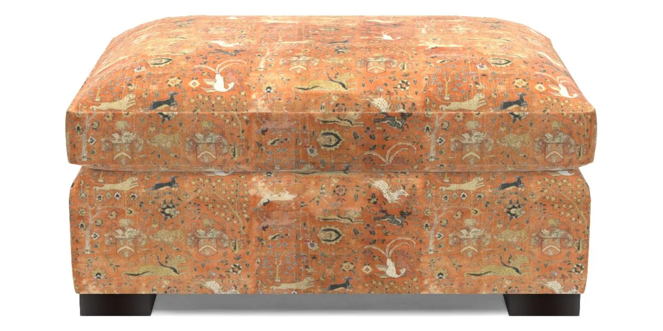 Wadenhoe Bespoke Standard Footstools in V&A Threads of India Opulent Velvets - Lahore Dynasty : V&A Threads of India Opulent Velvets - Lahore Dynasty Flame
