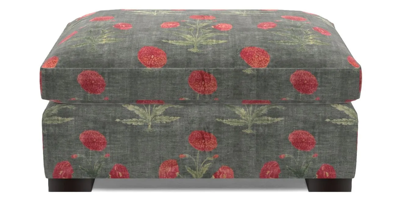 • Wadenhoe Bespoke Standard Footstools in V&A Threads of India Opulent Velvets - Regal Poppy : V&A Threads of India Opulent Velvets - Regal Poppy Pitch