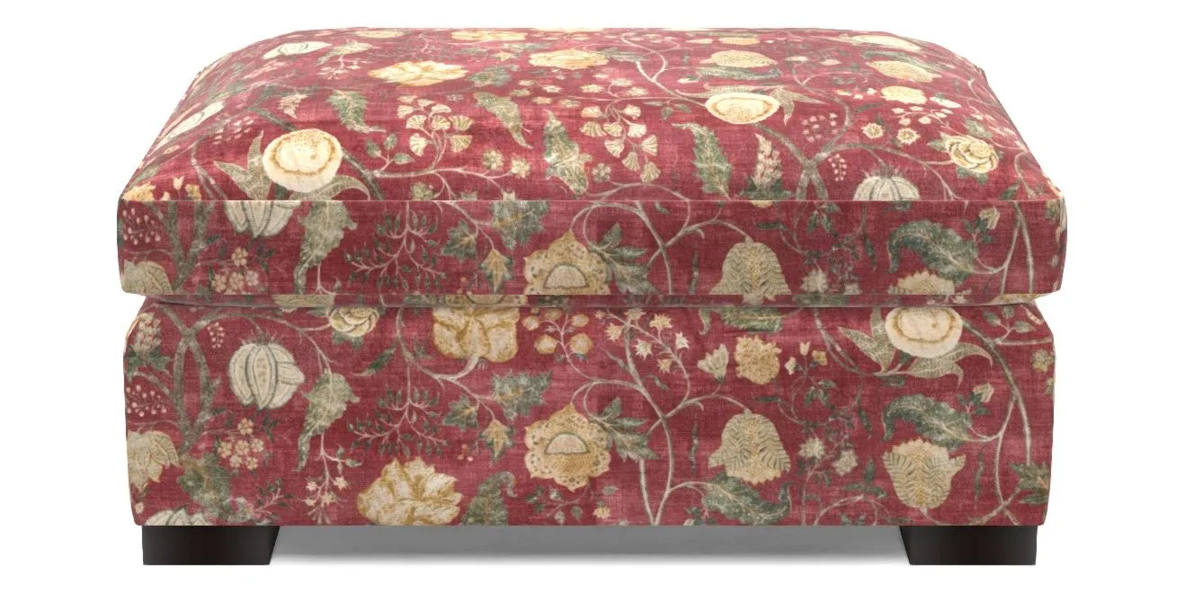 Wadenhoe Footstool Bespoke Standard Footstools in V&A Threads of India Opulent Velvets - Tree of Life : Rouge