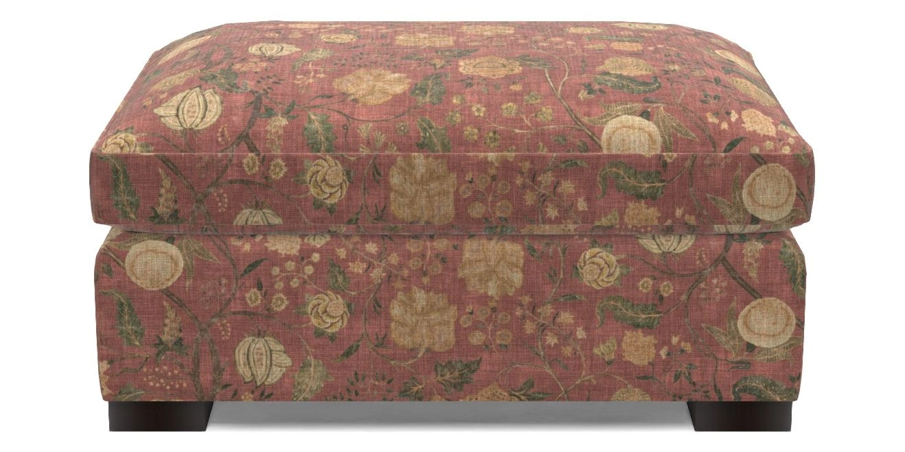 Wadenhoe Bespoke Standard Footstools in V&A Threads of India on Linen - Tree of Life : V&A Threads of India on Linen - Tree of Life Brick