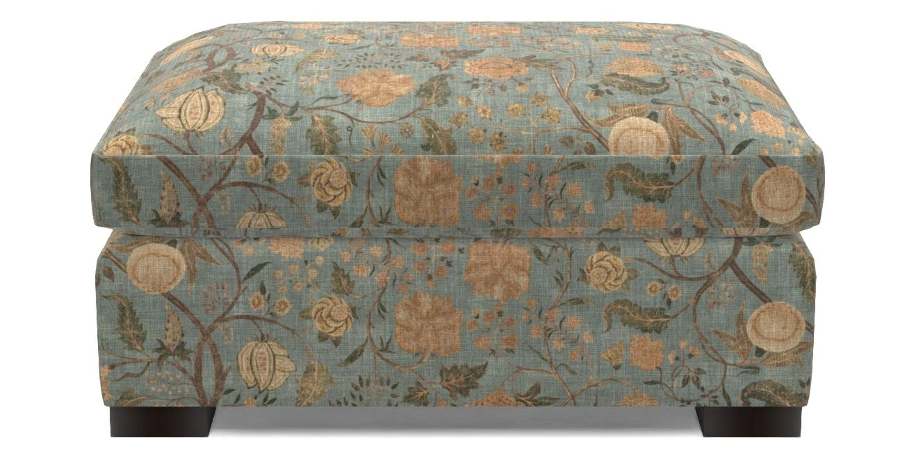Wadenhoe Bespoke Standard Footstools in V&A Threads of India on Linen - Tree of Life : V&A Threads of India on Linen - Tree of Life Mineral Blue